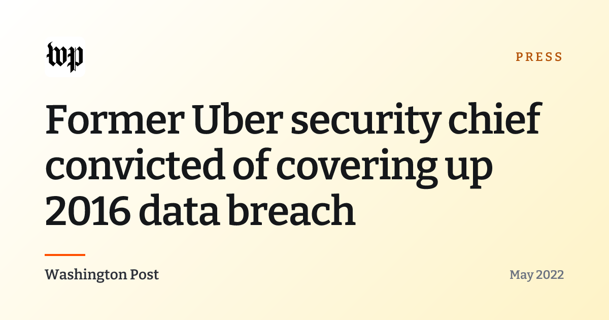 Washington Post coverage of the October 2022 conviction of former Uber security chief Joe Sullivan for obstructing a Federal Trade Commission investigation into the 2016 breach. Casey Ellis is quoted on the precedent the verdict sets for security executives navigating disclosure obligations.