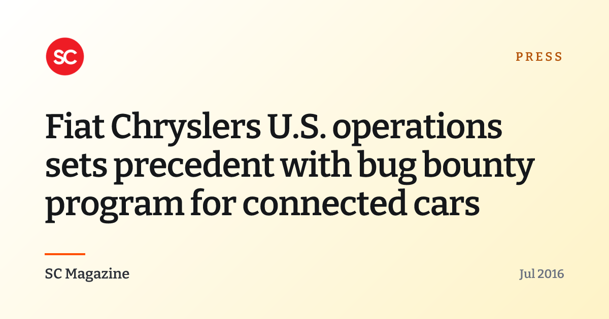 SC Magazine published an article about Fiat Chrysler's U.S. operations launching a bug bounty program for connected vehicles, marking an industry first in automotive security practices. Casey Ellis contributed expertise on vulnerability disclosure frameworks that informed the program's design and helped establish responsible reporting procedures for vehicle security flaws.